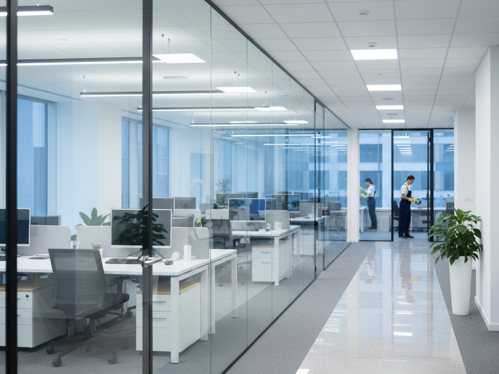 A clean office keeps teams healthy and focused. We handle desks, meeting rooms, phones, keyboards, touchpoints, kitchens, and washrooms. Choose daily, several times weekly, or hybrid schedules.